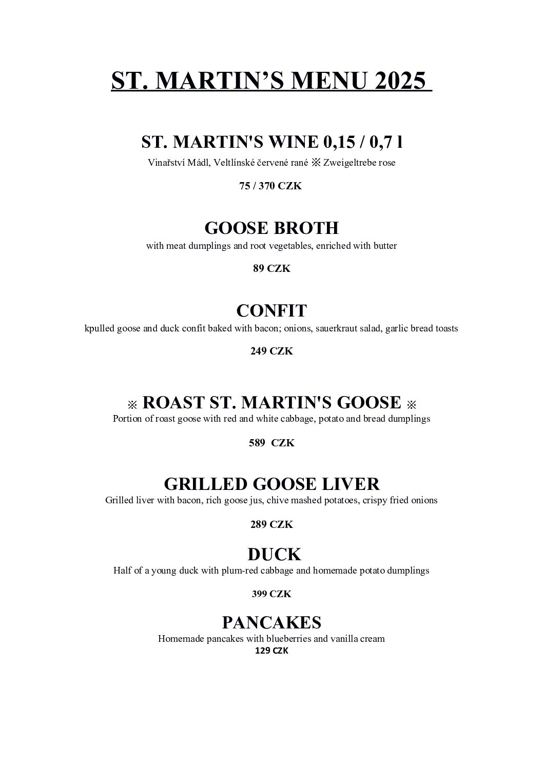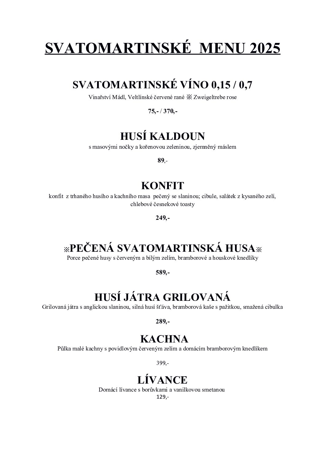 Svatomartinské menu 2025